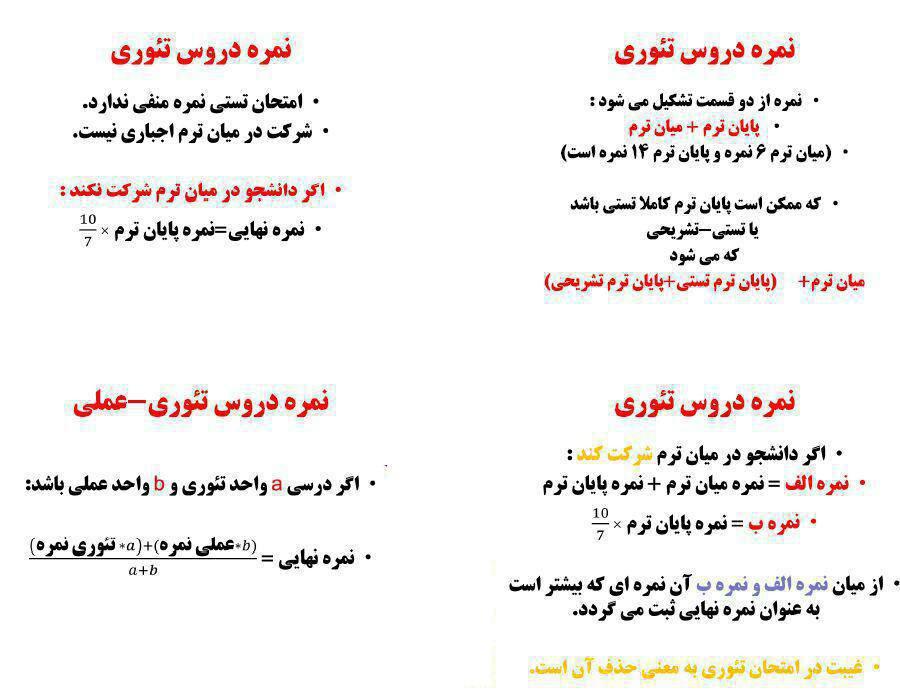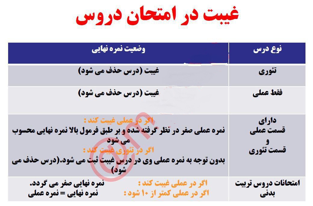 نحوه محاسبه نمرات در پیام نو ر و عوا قب غیبت در امتحانات
